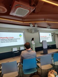 No evento, Diego teve a oportunidade de conhecer exemplos de soluções tecnológicas — gratuitas — que já são disponibilizadas por grandes plataformas com foco no público infantil ou familiar. Entre as boas práticas estão: